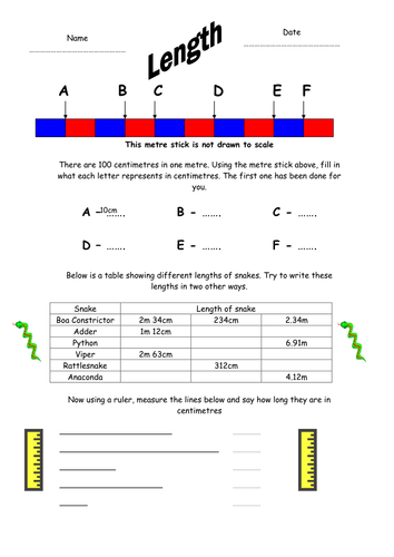 Measuring Length worksheets and online exercises by fer895. Cluster 4 Task 1 (E) Grade/level: Grade 1. by MadeleineTapia. Measuring length in mm and cm. Grade/level: 2. by gracianahabibi. Comparing Length. Grade/level: 2.